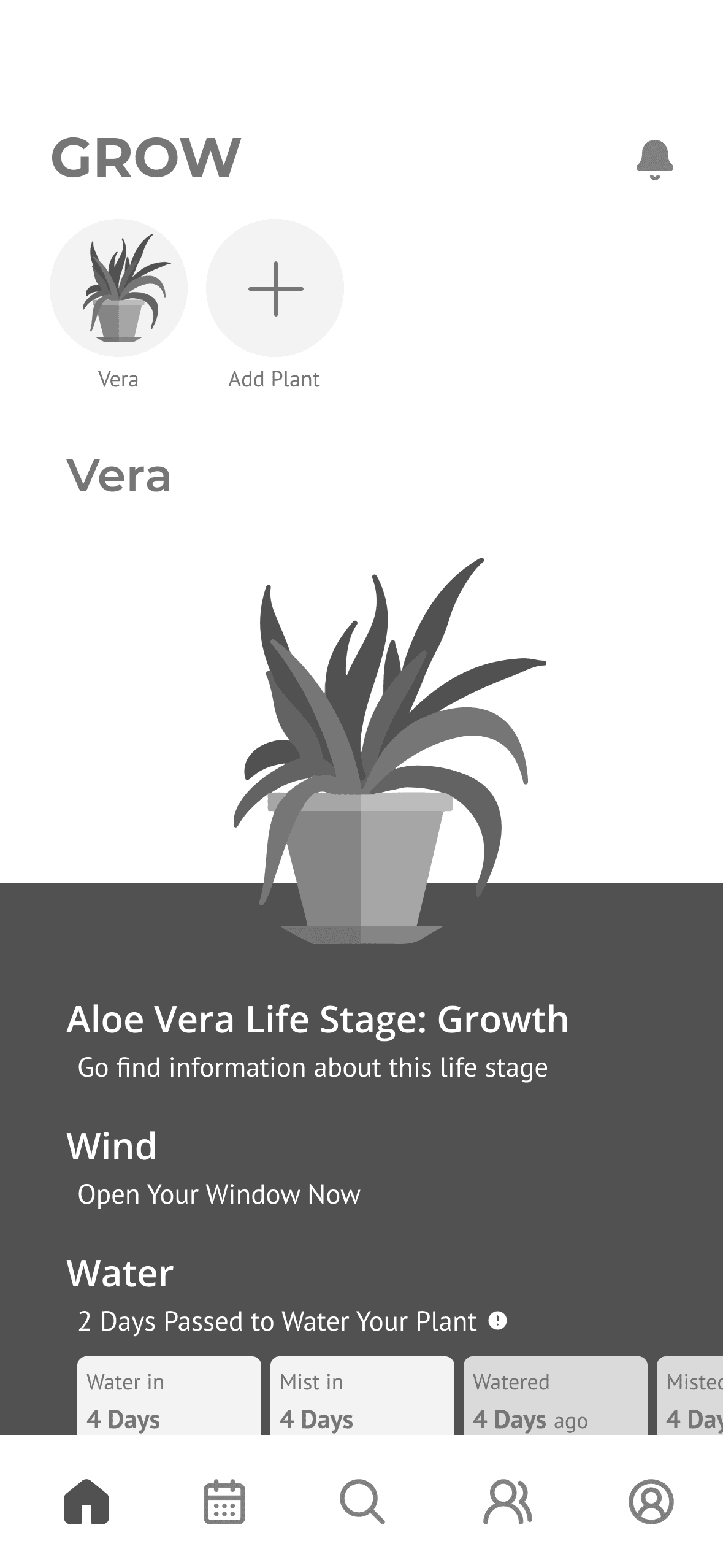 Grow is a plant care system designed to help beginner gardeners understand and care for their plants with confidence. The application combines animated plant characters, AI-powered plant scanning, and personalized reminders to guide users through everyday plant care. Together, these features create a more intuitive and engaging experience that makes plant care simple and enjoyable.