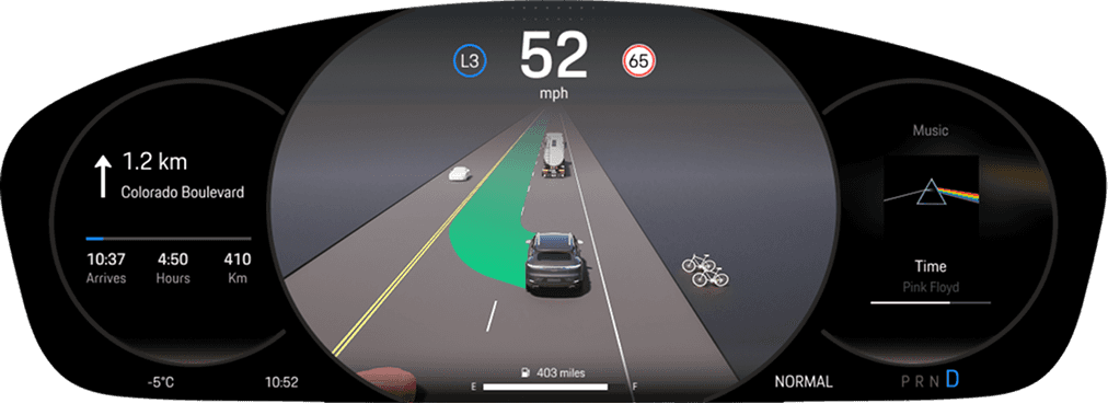 System is divided into four different displays : the driver dashboard essential driving information, a central display for driver-focused navigation, a passenger display for support and entertainment, and a lower display for health and comfort. Physical buttons were also reintroduced and linked to the screens for fast, tactile control.
