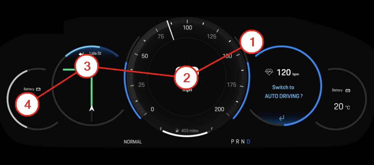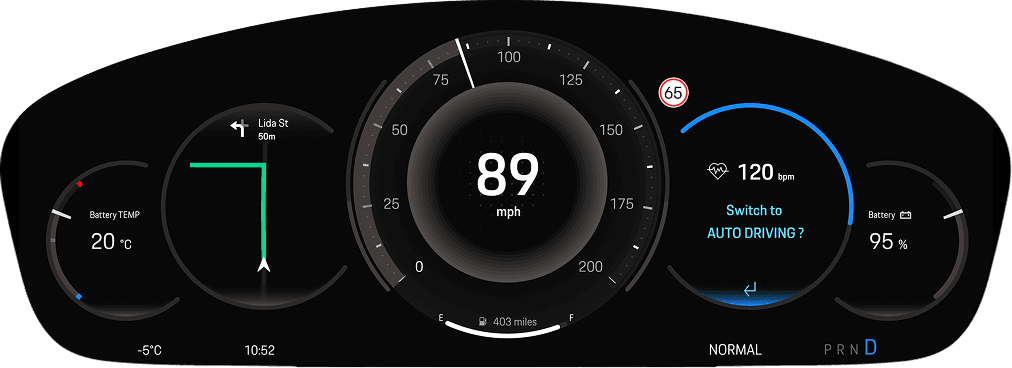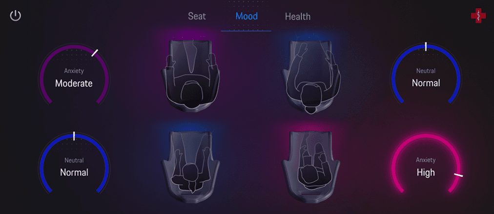 Monitors health data such as BPM, blood oxygen, and body temperature for the driver and all passengers. In case of an emergency, the cabin will respond immediately by navigating to the nearest hospital, connecting with a remote doctor for first-aid advice, and sharing real-time health data with the corresponding hospital.
