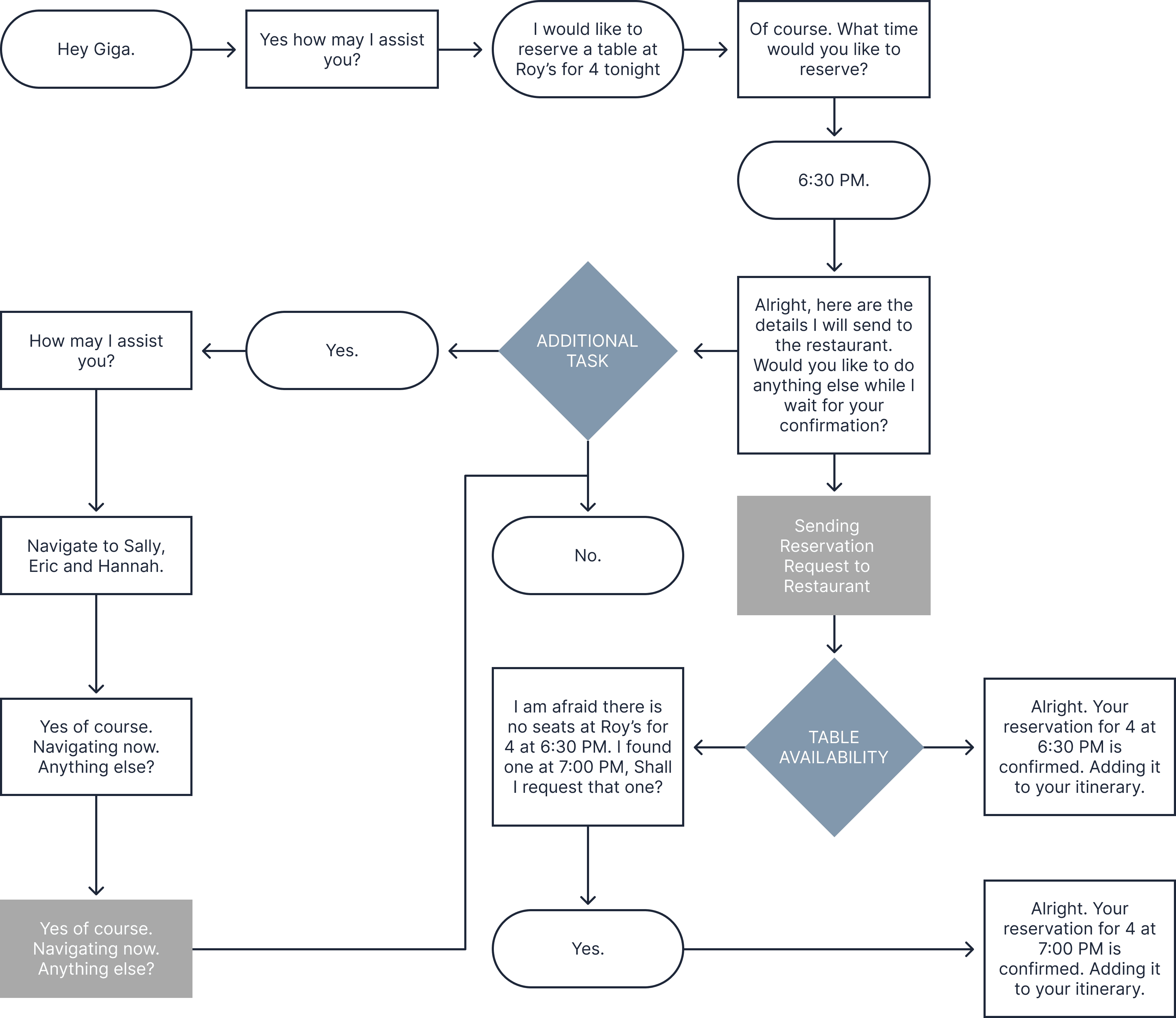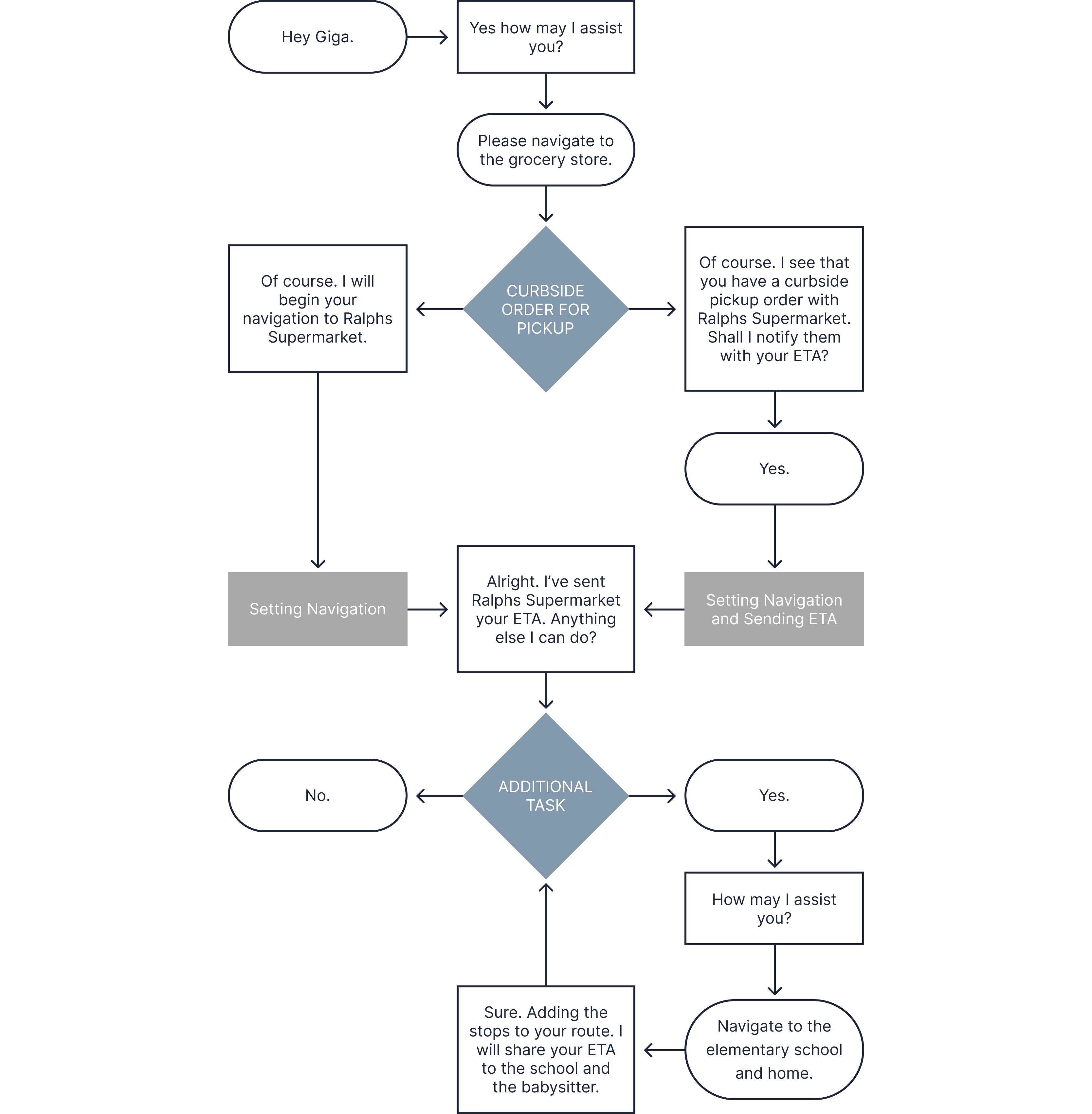Our goal was to design a personalized voice AI that extends beyond basic tasks to support drivers’ everyday needs while keeping their attention safely on the road. By leveraging Google Maps’ contextual awareness, the system enables drivers to place food orders, make reservations, and coordinate pickups through adaptive, distraction-minimizing conversations.
